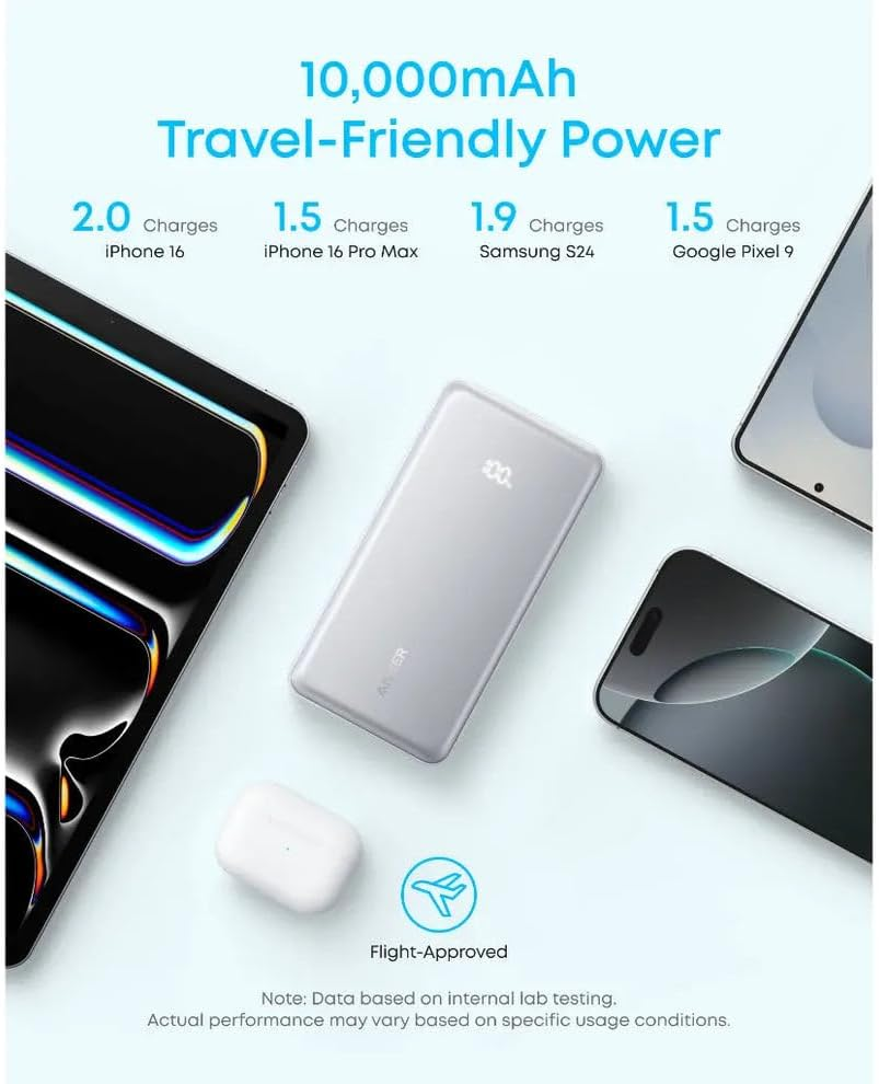 استمتع بطاقة قوية في تصميم أنيق مع Anker Zolo Power Bank بسعة 10000 مللي أمبير وقدرة شحن سريعة تصل إلى 22.5 واط.