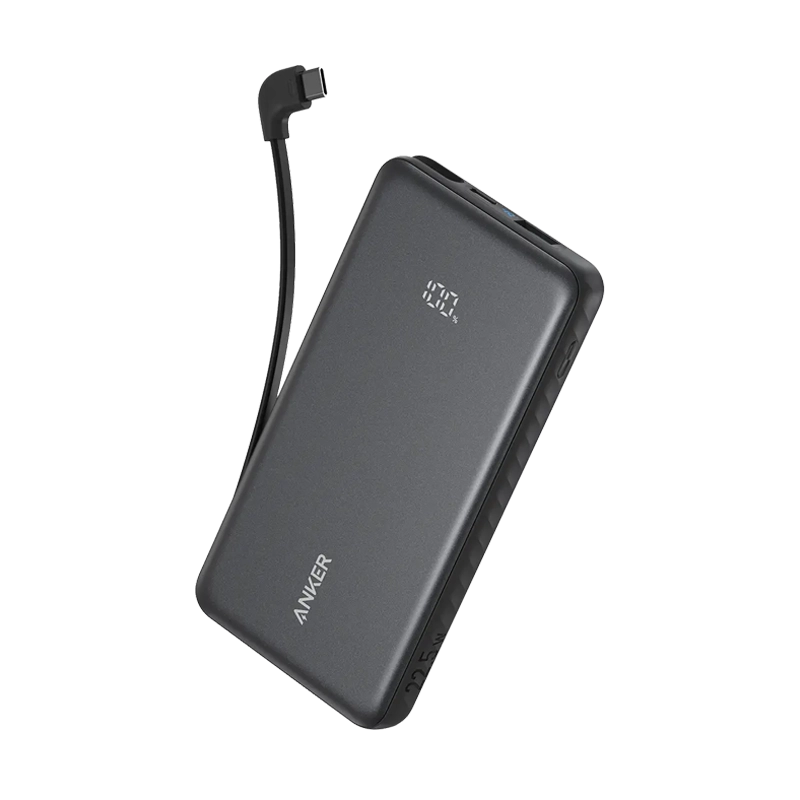 باور بانك Anker Zolo 10000mAh بقدرة 22.5W مع كابل USB-C مزدوج مدمج – أسود
