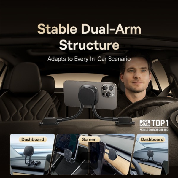حامل السيارة المغناطيسي Baseus PrimeTrip C03s يمنحك تثبيتًا فائق القوة ومرونة كاملة في ضبط الزوايا بفضل الذراع المزدوجة والمغناطيس القوي حتى 25 نيوتن، مع تركيب ثابت على التابلوه أو الزجاج الأمامي حتى في درجات الحرارة العالية.