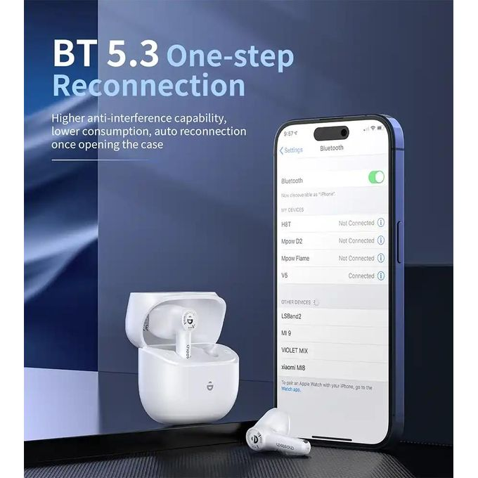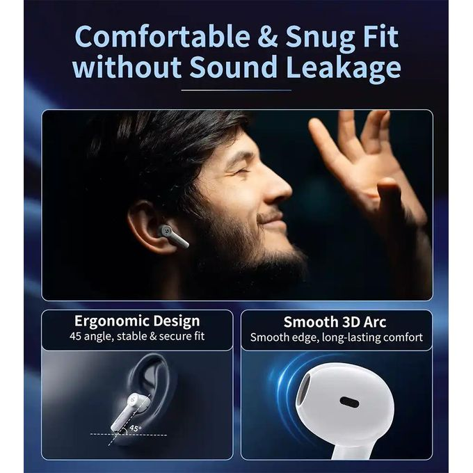 تتميز بتقنية تقليل الضوضاء ENC المزدوجة لضمان وضوح صوتك أثناء المكالمات، وتدوم بطاريتها حتى 7 ساعات تشغيل، بالإضافة إلى 28 ساعة إضافية مع علبة الشحن — لتستمتع بيوم كامل من الصوت دون انقطاع.