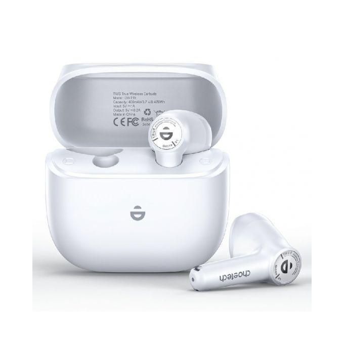 سماعات Choetech BH-T19 الرياضية اللاسلكية المفتوحة الأذن بتقنية البلوتوث 5.3 وتقليل الضوضاء ENC، مقاومة للماء IPX6، بطارية 24 ساعة، لون أبيض، ضمان 18 شهر