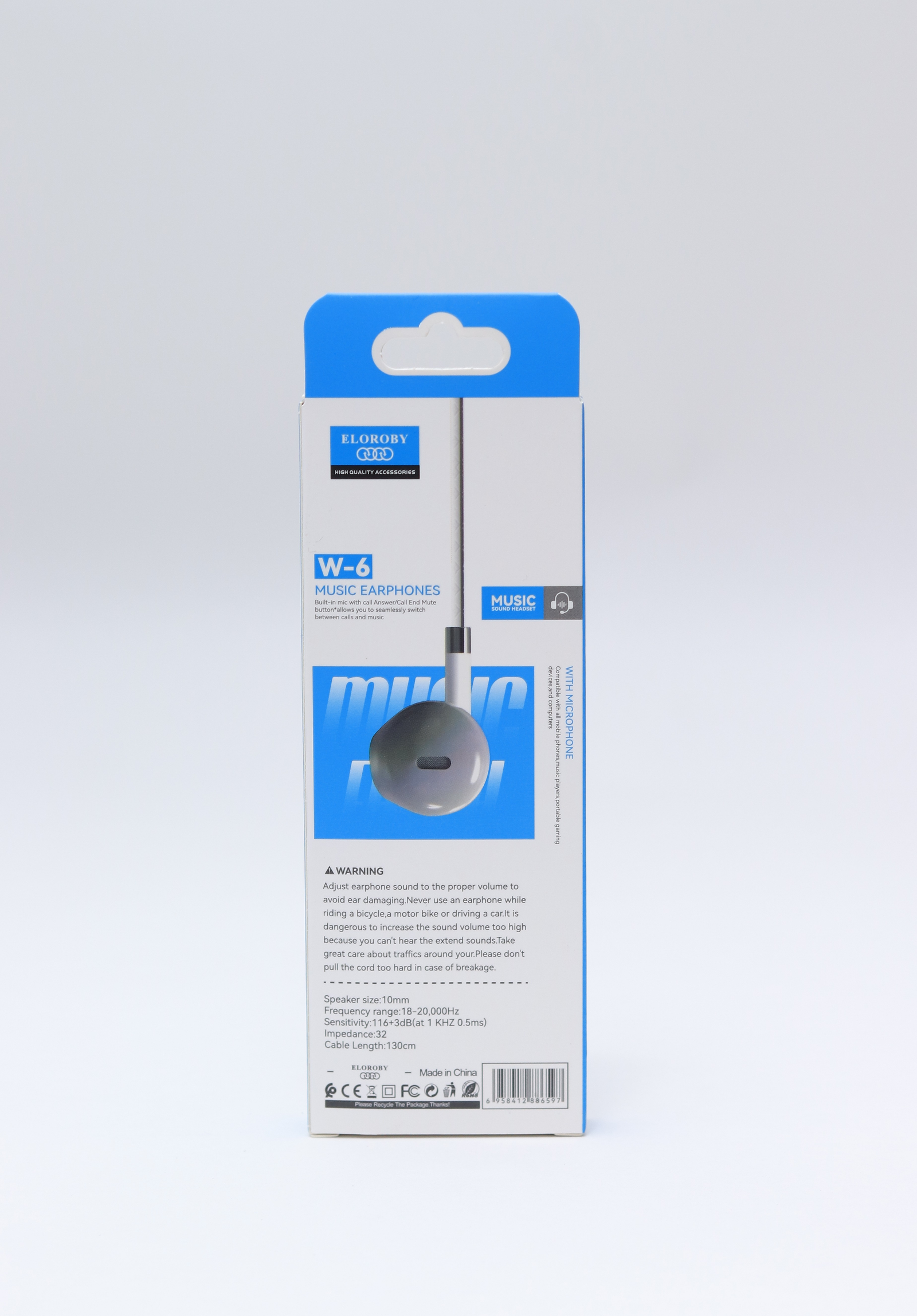 سماعات Eloroby W-6 السلكية للموسيقى – صوت Hi-Fi وباس قوي مع ميكروفون وزر تحكم للمكالمات