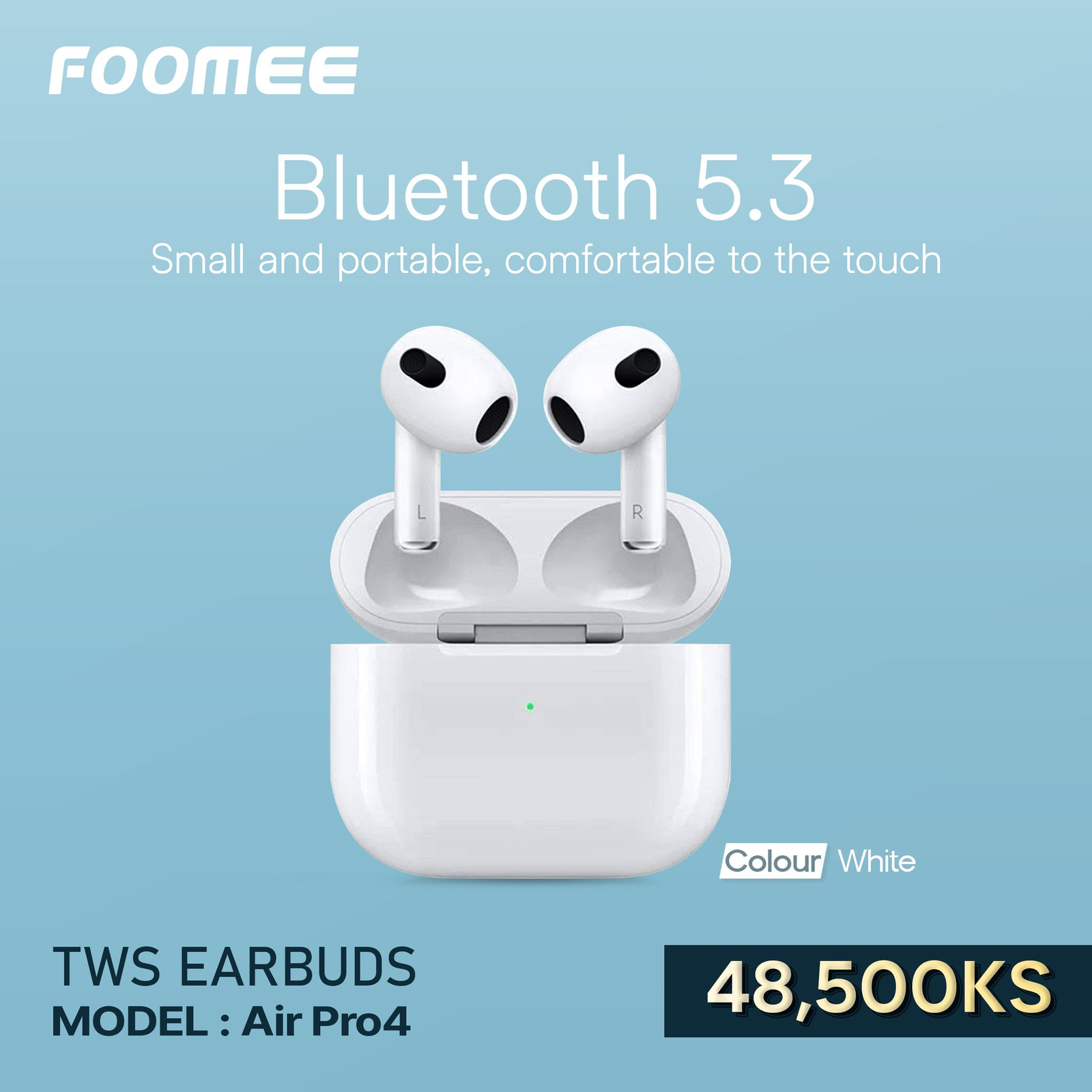 استمتع بالأناقة والأداء المميز مع سماعات Foomee Air Pro4 اللاسلكية، المصممة لتوفر اتصالًا ثابتًا وصوتًا واضحًا بفضل تقنية Bluetooth 5.3. تتميز بتصميم نصف داخل الأذن لراحة أفضل عند الاستخدام الطويل، مع وزن خفيف وسهولة في الحمل، مما يجعلها خيارًا عمليًا واقتصاديًا للاستخدام اليومي.