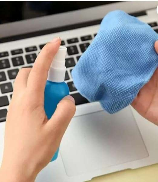 رش السائل على قطعة القماش وليس على الشاشة مباشرة