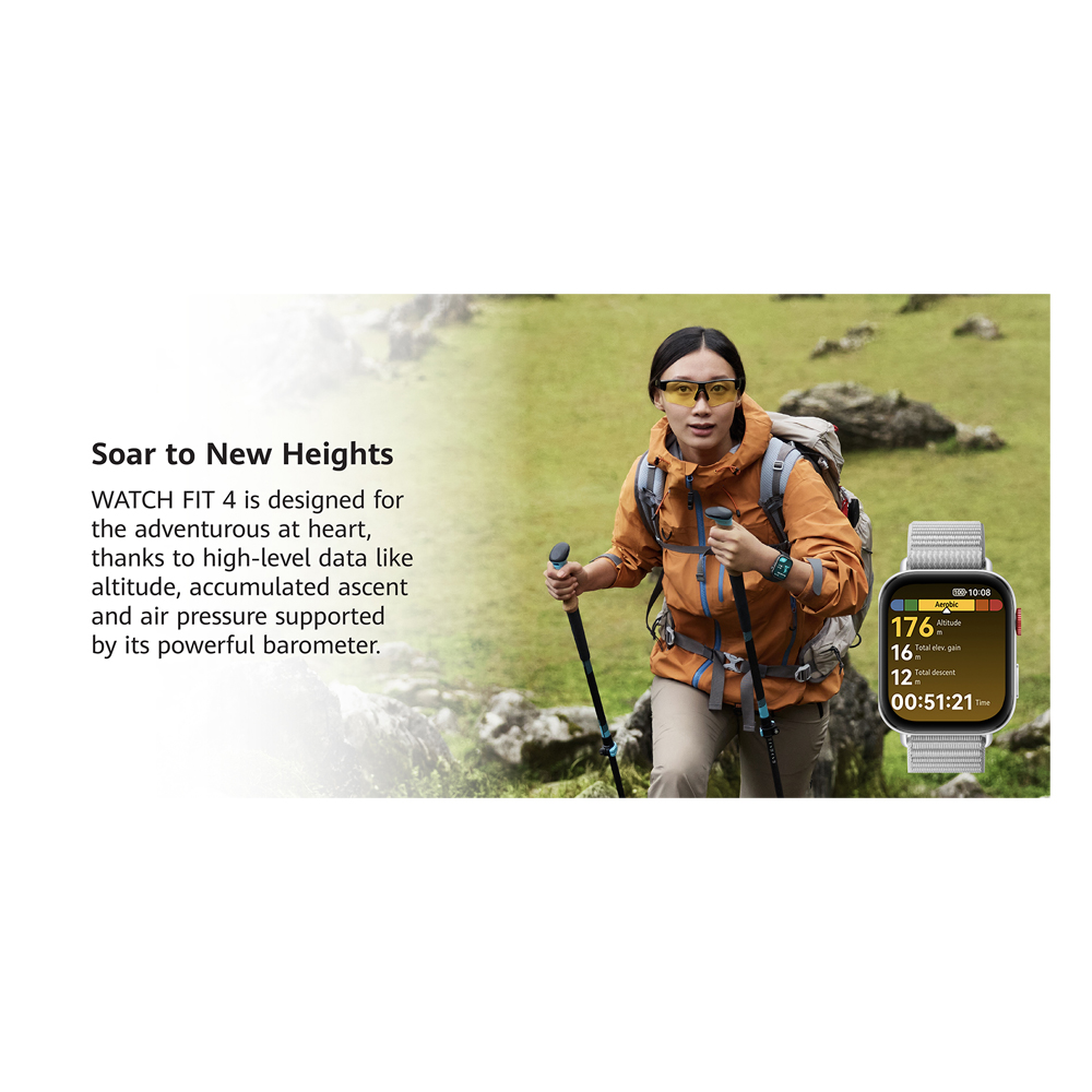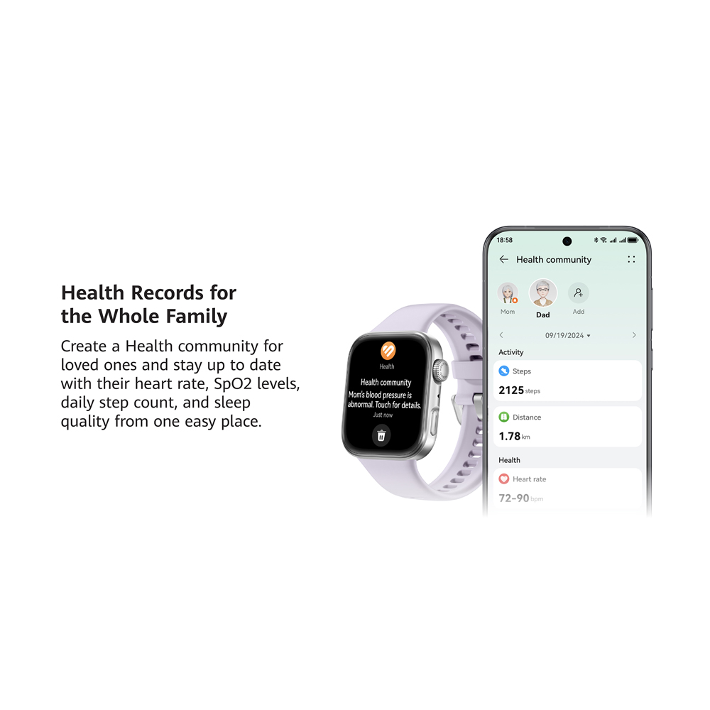 توفر Huawei Watch Fit 4 نظام مراقبة صحي دقيق وسريع يساعدك على تتبع معدل ضربات القلب، مستوى الأكسجين في الدم، جودة النوم، مستويات التوتر، والدورة الشهرية مع عرض البيانات بشكل واضح داخل تطبيق Huawei Health، لمساعدتك في تحسين نمط حياتك اليومي.