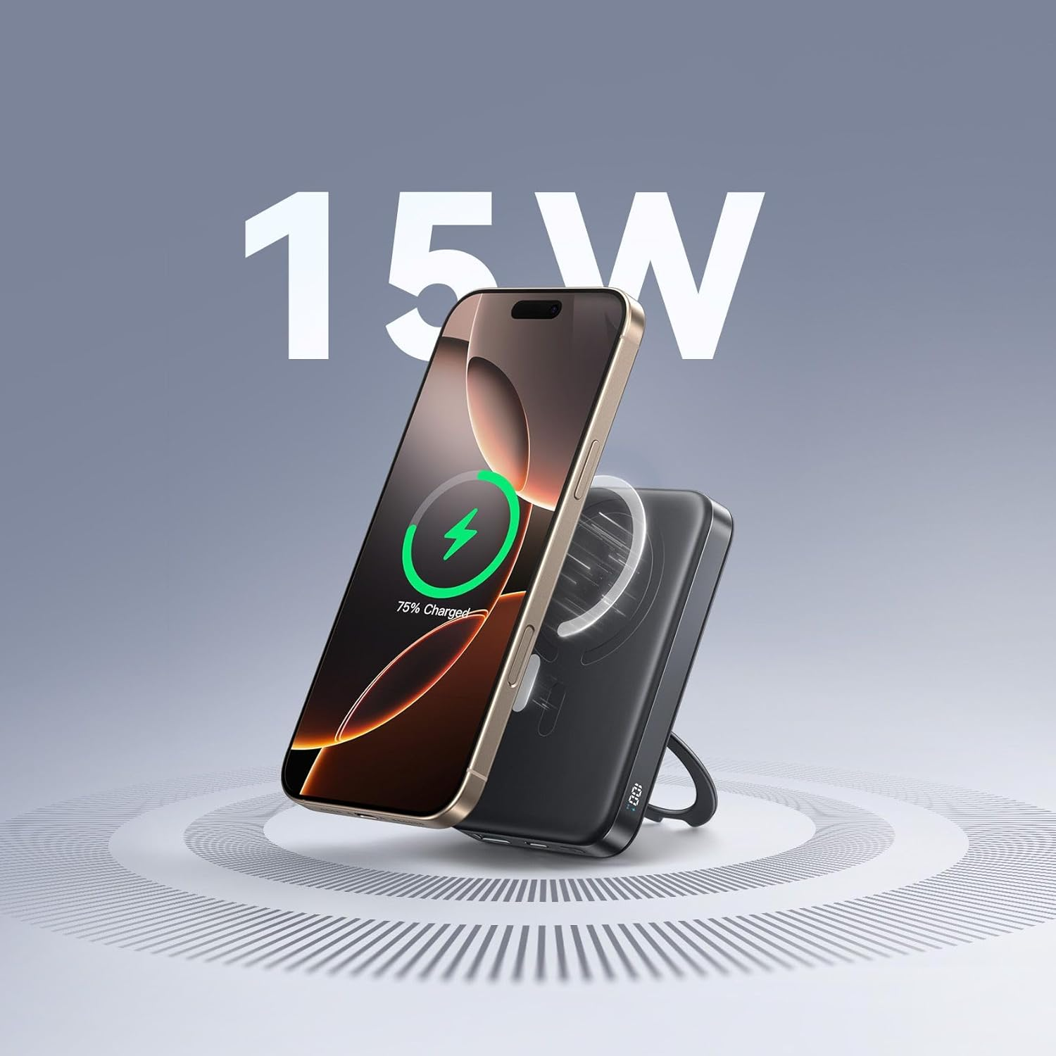 باور بنك Joyroom JR-PBM12 يجمع بين الشحن السريع بقوة 22.5 واط والشحن اللاسلكي المغناطيسي المعتمد Qi 2.0، ليقدّم شحنًا فعليًا بقوة 15 واط لأجهزة آبل. يأتي مزوّدًا بحامل جلدي مدمج لاستخدام الهاتف أفقيًا أو رأسيًا بسهولة، مع تصميم خفيف ومحمول يُناسب الاستخدام اليومي. كما يدعم مدخلين للشحن وثلاث مخارج لتوفير أقصى مرونة أثناء الشحن.