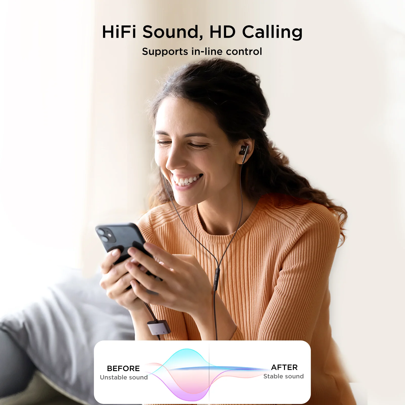 موصل Lightning مع منفذ 3.5 مم للاستماع والشحن في نفس الوقت.