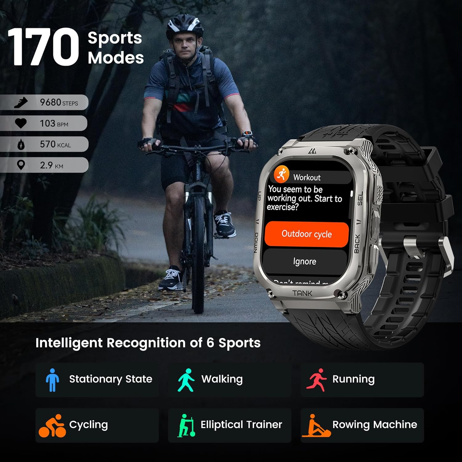 • 170 وضع رياضي: دعم شامل للرياضات الداخلية والخارجية مع دقة عالية في جمع البيانات.