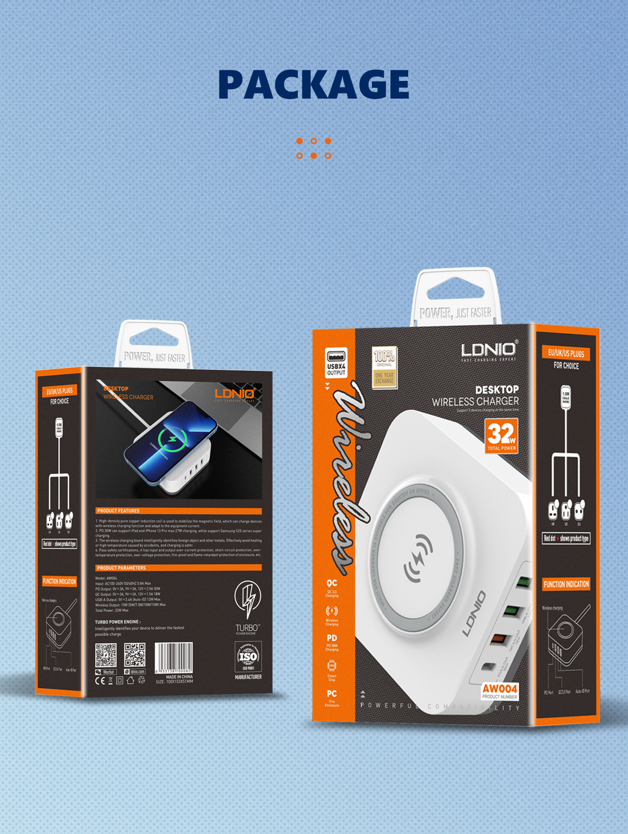 شاحن LDNIO AW004 لاسلكي للمكتب 15 واط – 4 منافذ شحن سريع 32 واط-1269