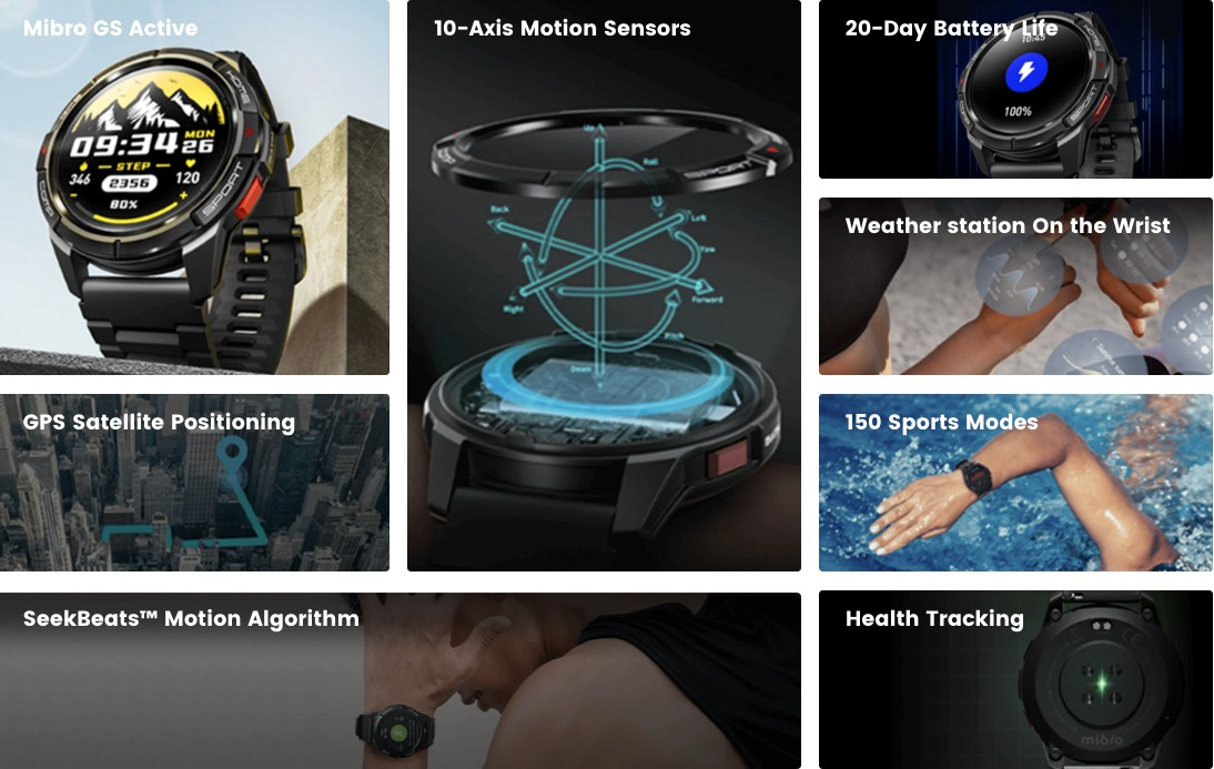 ساعة Mibro GS Active هي ساعة رياضية ذكية متكاملة تجمع بين تتبع صحي دقيق، أوضاع رياضية متقدمة، ونظام تحديد مواقع عالي الدقة، مع شاشة AMOLED ساطعة وبطارية طويلة العمر لترافقك في كل تمرين ومغامرة.