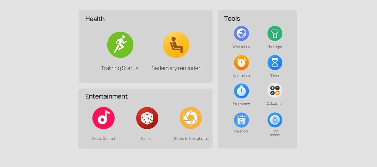 الميزات الخاصة: منبه، مراقب أكسجين الدم، مكالمات بلوتوث، GPS، مراقب معدل ضربات القلب، إشعارات الرسائل، مراقب النوم، مراقب التوتر، مقاومة للماء، عرض الطقس