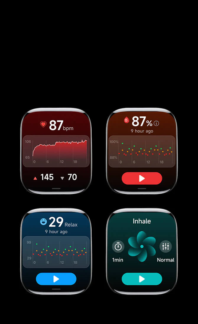 • متابعة صحية شاملة تشمل نبض القلب، الأكسجين في الدم، النوم، والتوتر