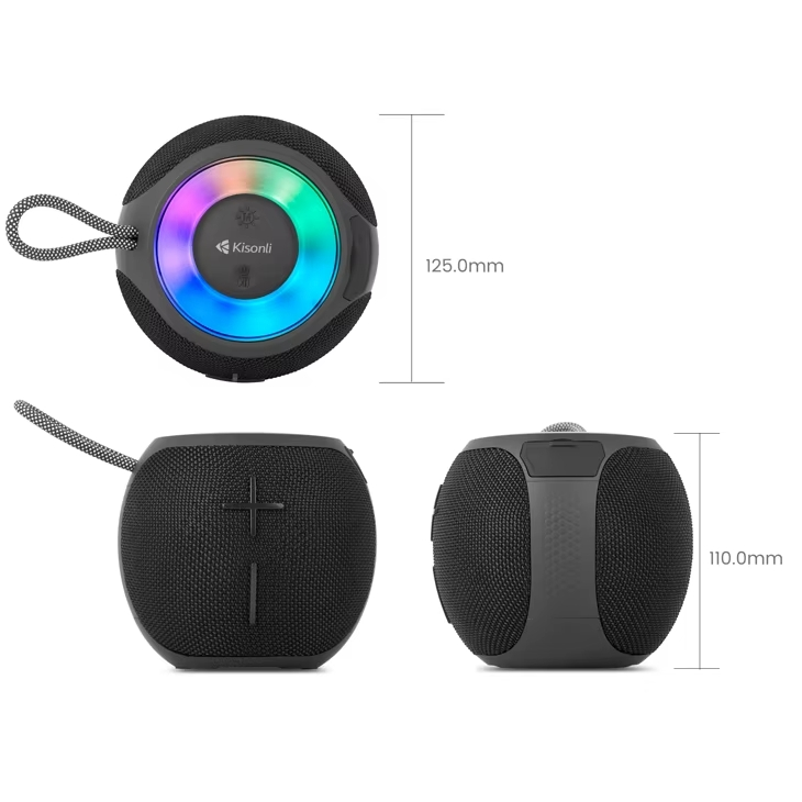 مكبر الصوت Kisonli G16 هو سماعة بلوتوث محمولة بتصميم دائري عصري وصوت واضح بقوة 8 واط. مناسبة للاستخدام الخارجي والرحلات والحفلات الصغيرة. تتميز بإضاءة RGB جذابة وبطارية قوية تدوم لساعات، مع دعم تشغيل من البلوتوث وUSB وAUX.