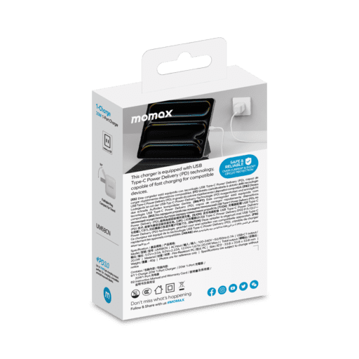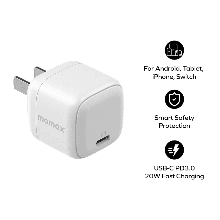 استمتع بتجربة شحن سريعة وآمنة مع شاحن MOMAX One Plug 20W USB-C Mini Charger المصمم لتوفير أقصى كفاءة في حجم صغير ومحمول.