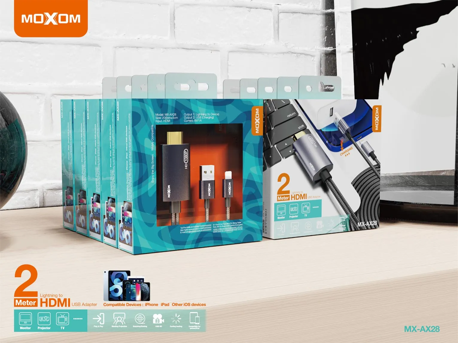 محول MOXOM MX-AX28 من Lightning إلى HDMI USB بطول 2 متر –4175