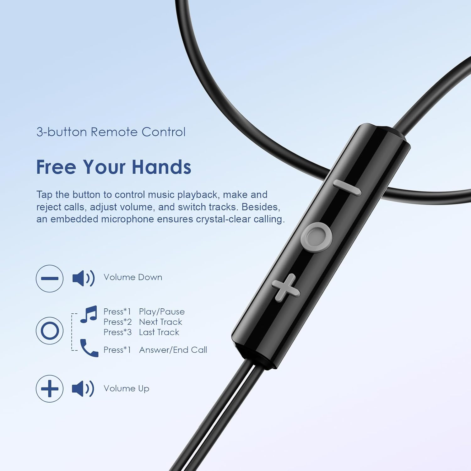 ريموت 3 أزرار وميكروفون مدمج للتحكم في الموسيقى والمكالمات بدون استخدام اليدين