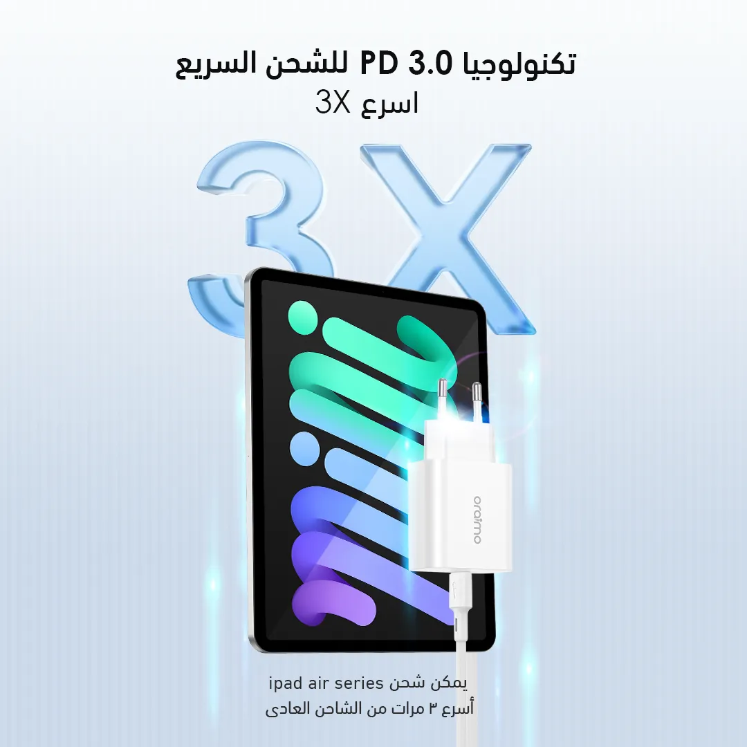 • شحن سريع 20 وات بتقنية PD 3.0 حتى 3 مرات أسرع
