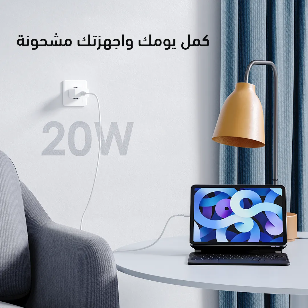 • محتويات العبوة: رأس شاحن + كابل USB-C إلى Lightning