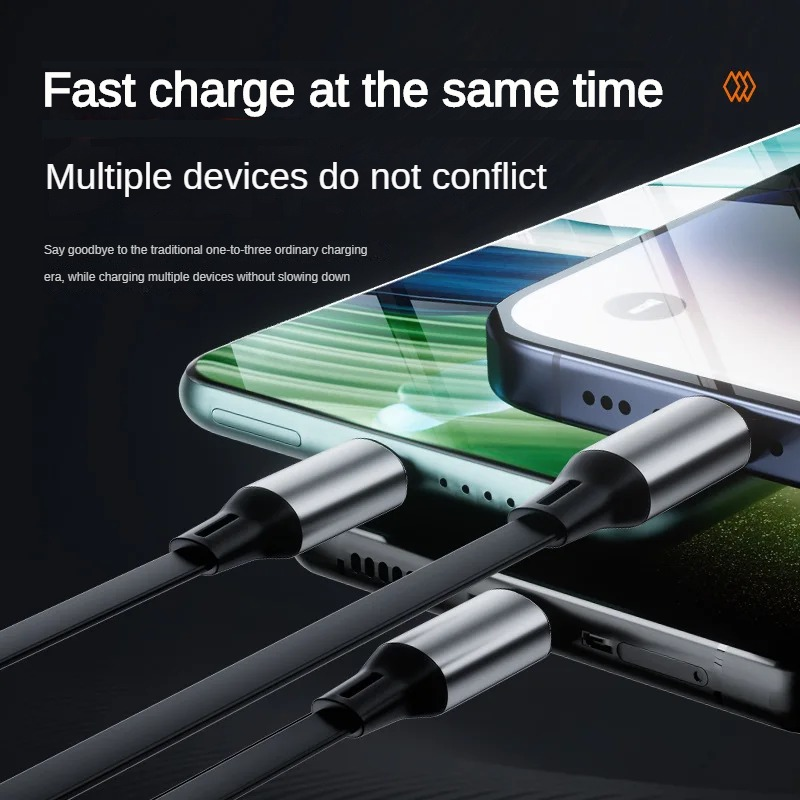 احصل على تجربة شحن متكاملة مع كابل الشحن 3 في 1 القابل للسحب الذي يجمع بين السرعة والمرونة في تصميم واحد عملي.
