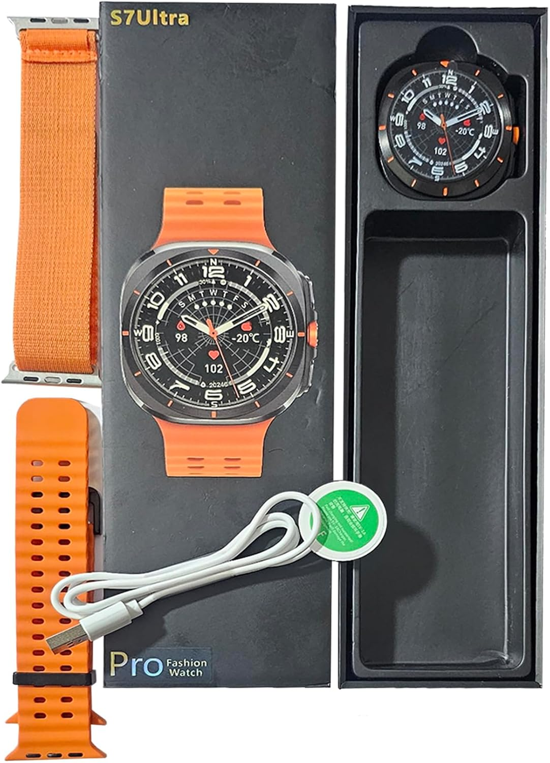 ساعة S7 Ultra pro الذكية – شاشة 1.46 بوصة عالية الدقة – ذاكرة 4 جيجا – شريحتان بلوتوث 5.3 – سوارين برتقاليين – بطارية 300 مللي أمبير