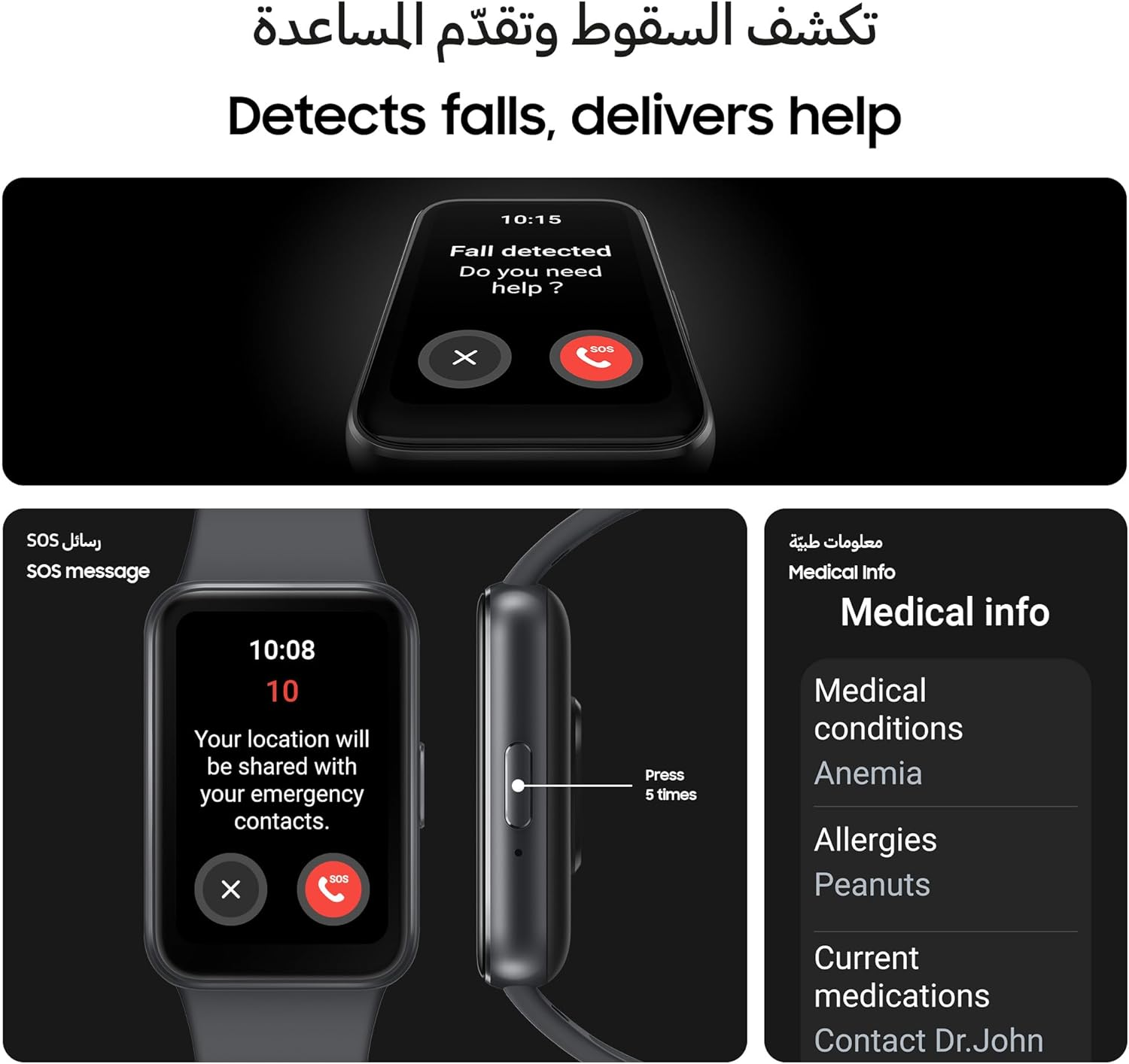 ساعة Samsung Galaxy Fit3 الذكية مصممة لمساعدتك في متابعة نشاطك اليومي وصحتك بسهولة. تأتي بشاشة كبيرة 1.6 بوصة توفر رؤية واضحة وسهولة في الاستخدام، مع تصميم خفيف وأنيق مناسب للارتداء طوال اليوم. تدعم تتبع التمارين والنوم واكتشاف السقوط، بالإضافة إلى بطارية قوية تدوم حتى 13 يومًا، مما يجعلها الخيار المثالي للرياضة والاستخدام اليومي.