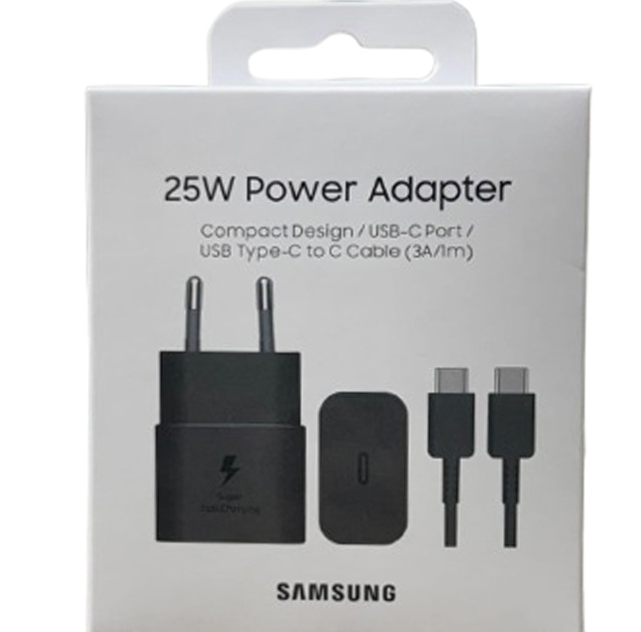 شاحن سامسونج أصلي EP-T2510X سريع 25 واط مع كابل USB-C، بتصميم موفر للطاقة، شحن فائق السرعة، وتوافق واسع مع مختلف الأجهزة.