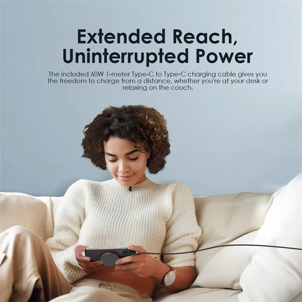 محتويات العلبة: شاحن لاسلكي – كابل Type-C – دليل المستخدم