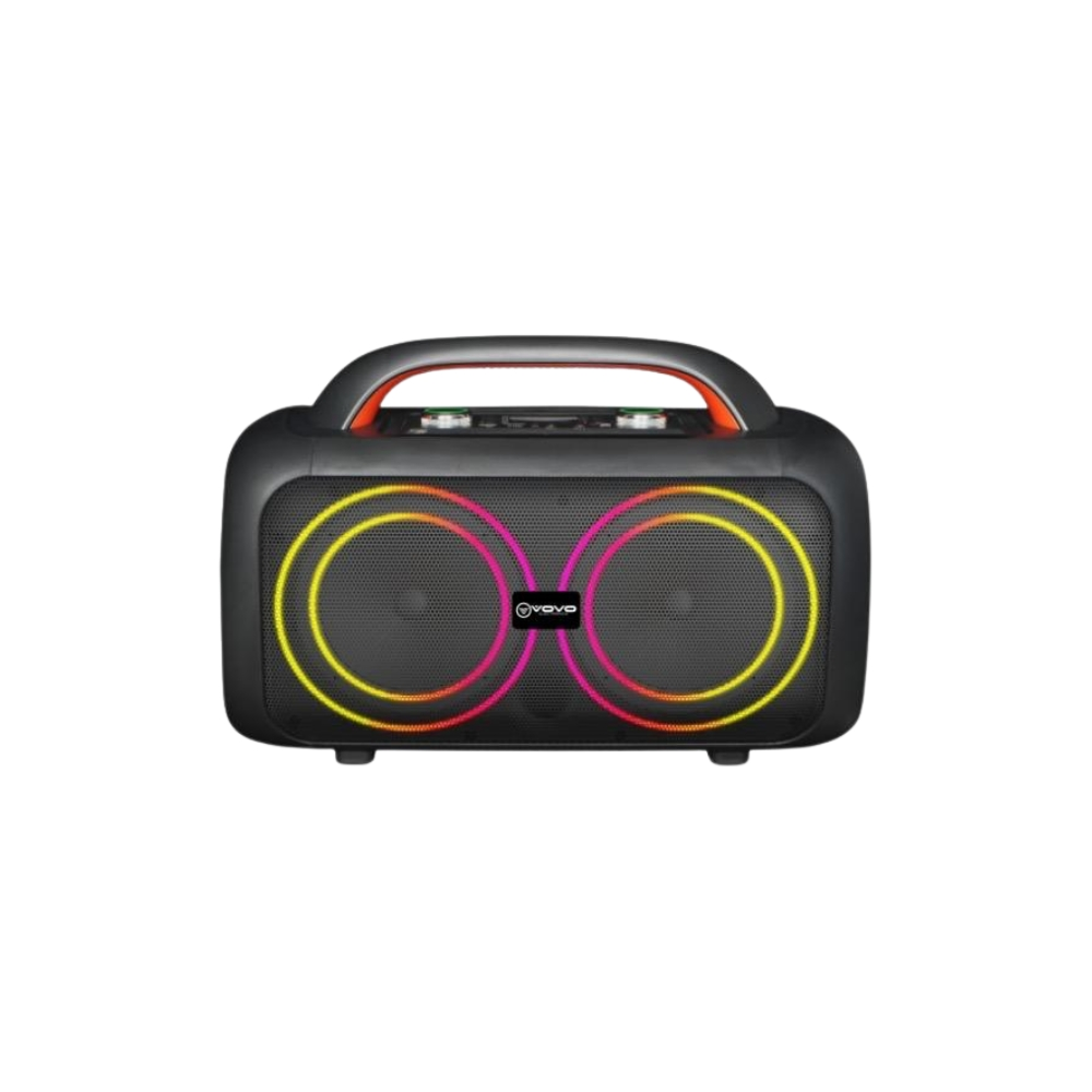 سماعة VOVO V-2126 هي اسبيكر حفلات قوي مزود بسماعتين 6.5 بوصة لصوت ستيريو غني مع باس عميق ونقاء عالي. بقدرة إخراج 40 وات RMS، هتعيش تجربة صوت احترافية في الحفلات، الكاريوكي، والرحلات.