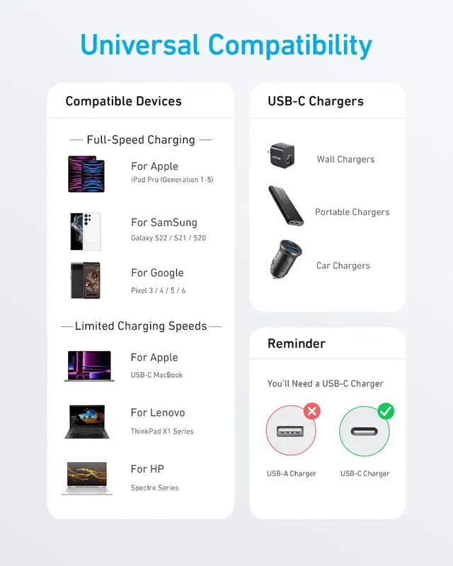 • التوافق: الهواتف الذكية، الأجهزة اللوحية، اللابتوبات، وجميع أجهزة USB-C