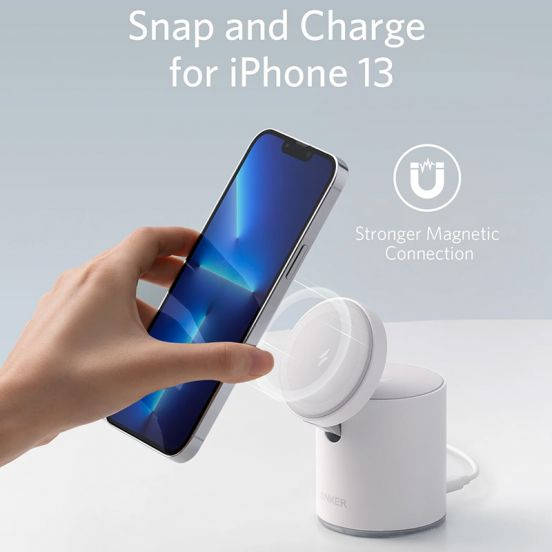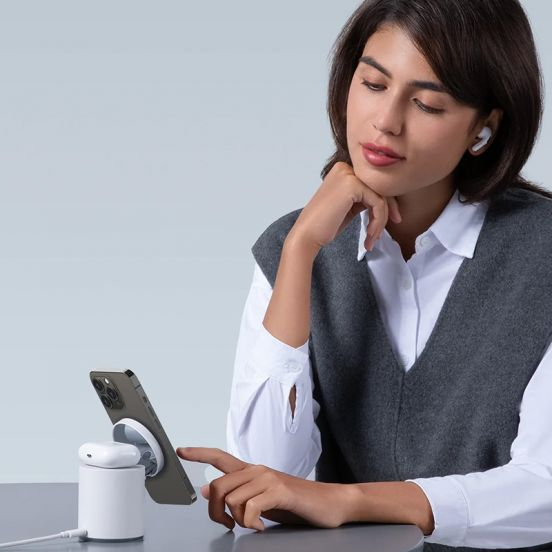 استمتع بشحن لاسلكي مزدوج وسماعات الأذن في نفس الوقت مع شاحن Anker MagGo 623 المغناطيسي المدمج، بحجم صغير وتصميم عملي وسهل الاستخدام.