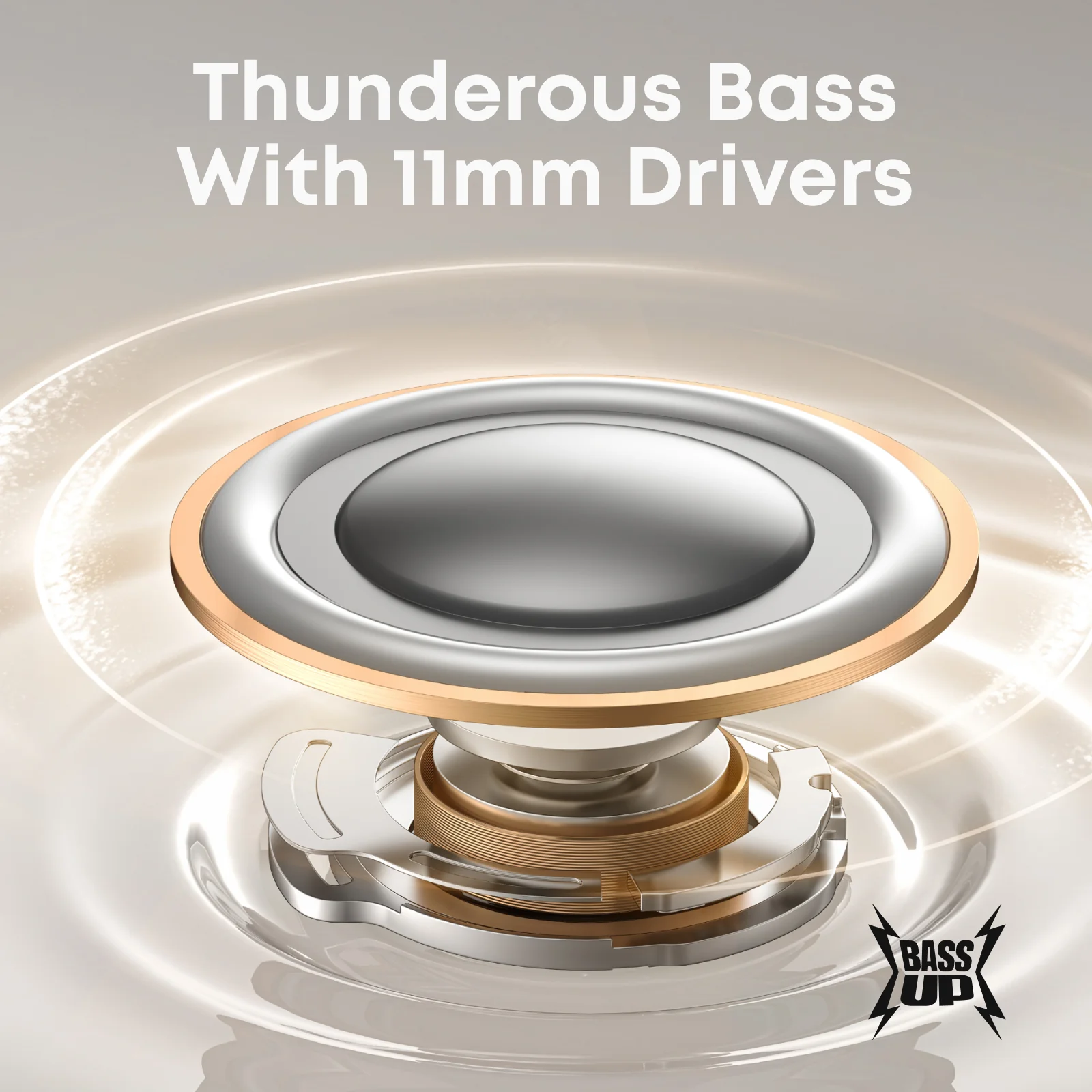صوت جهوري قوي: درايفر 11 ملم مع تقنية BassUp™ لصوت عميق وغامر.