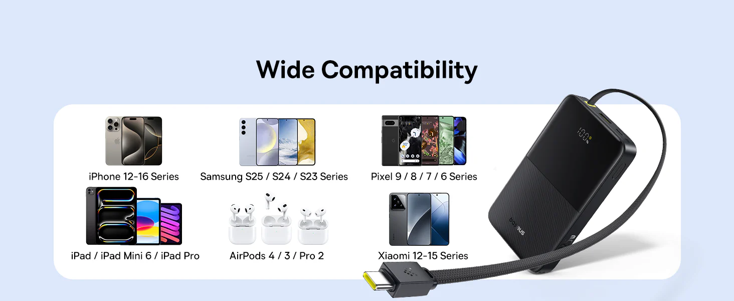 التوافق: iPhone 16 Series، Galaxy S25 / S24، iPad، Pixel، AirPods، الساعات الذكية
