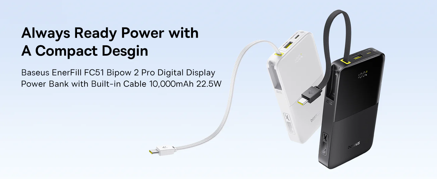محتويات العلبة: باور بانك Baseus EnerFill FC51 + دليل المستخدم