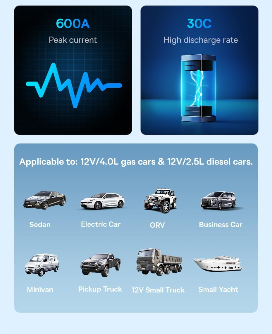 تيار ذروة 600A لتشغيل فوري لمحركات السيارة