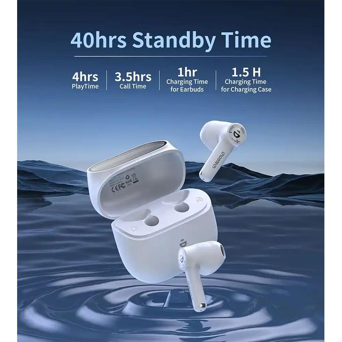 تتميز بتقنية تقليل الضوضاء ENC المزدوجة لضمان وضوح صوتك أثناء المكالمات، وتدوم بطاريتها حتى 7 ساعات تشغيل، بالإضافة إلى 28 ساعة إضافية مع علبة الشحن — لتستمتع بيوم كامل من الصوت دون انقطاع.