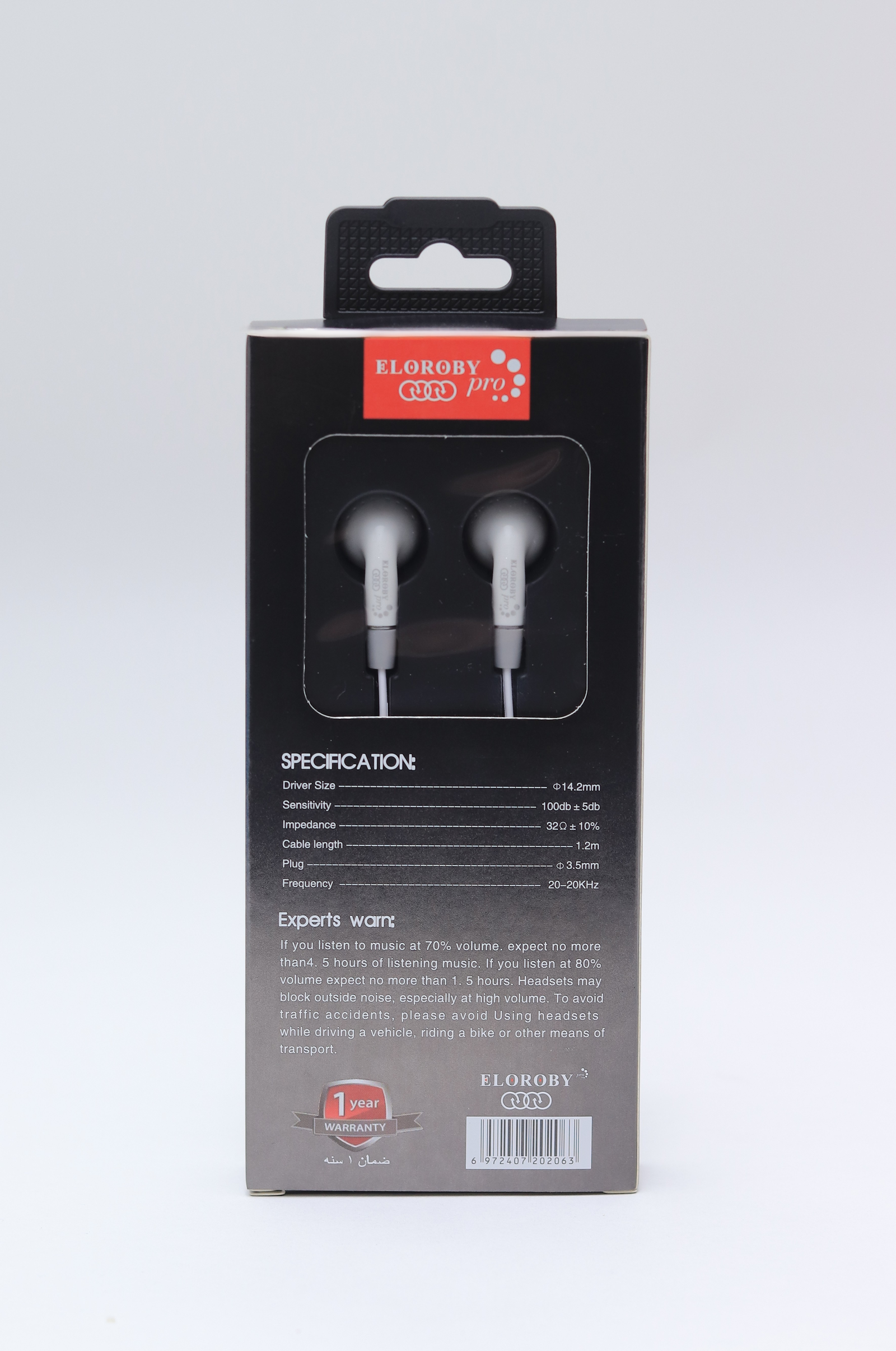سماعات Eloroby Pro 6 توفر صوتًا عالي الدقة Hi-Fi بفضل درايفر كبير بحجم 14.2 مم يمنحك صوتًا قويًا ونقيًا مع أداء مميز. تأتي بمدخل 3.5 مم وسلك قوي بطول 1.2 متر وتصميم مريح للاستخدام الطويل. مناسبة للموسيقى والمكالمات والألعاب وجميع أجهزة الصوت التي تعمل بمنفذ 3.5 مم.