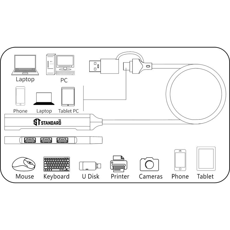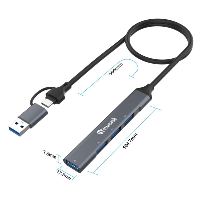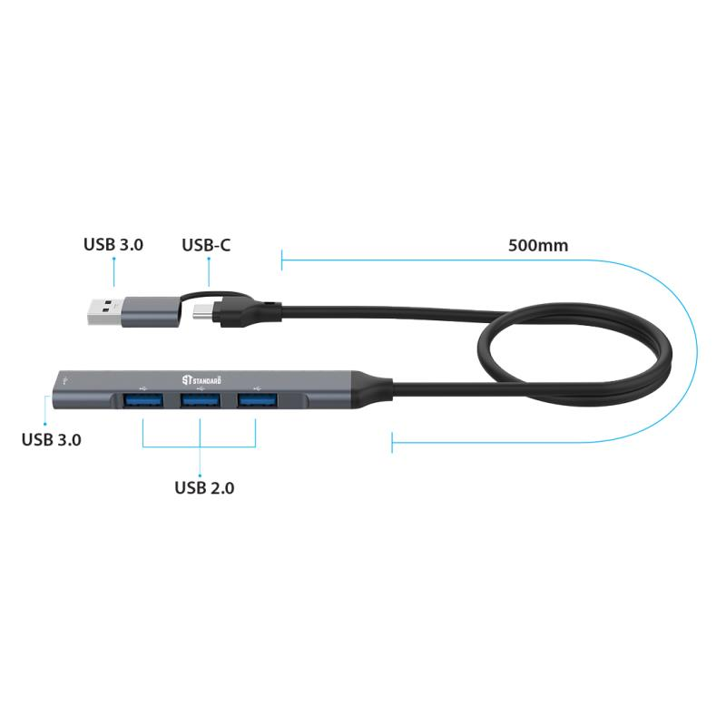 • التحويل: (USB-C + USB-A) إلى (USB 3.0 ×1 + USB 2.0 ×3)