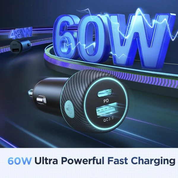 استمتع بالشحن السريع والآمن أثناء القيادة مع شاحن السيارة من Joyroom بقدرة 60 واط. يدعم تقنيتي PD3.0 وQC3.0 لشحن جهازين في نفس الوقت بأقصى سرعة. يوزع الشاحن التيار بذكاء عبر شريحة حماية مدمجة تمنع ارتفاع الحرارة أو الجهد الزائد، مما يحافظ على أمان أجهزتك وسيارتك. يتميز بزر إضاءة LED يتيح لك التبديل بين 7 ألوان أو إطفاؤها لتفادي الإزعاج الليلي. مصنوع من مواد PC+ABS مقاومة للاشتعال لضمان أداء طويل الأمد وشحن آمن دائمًا.