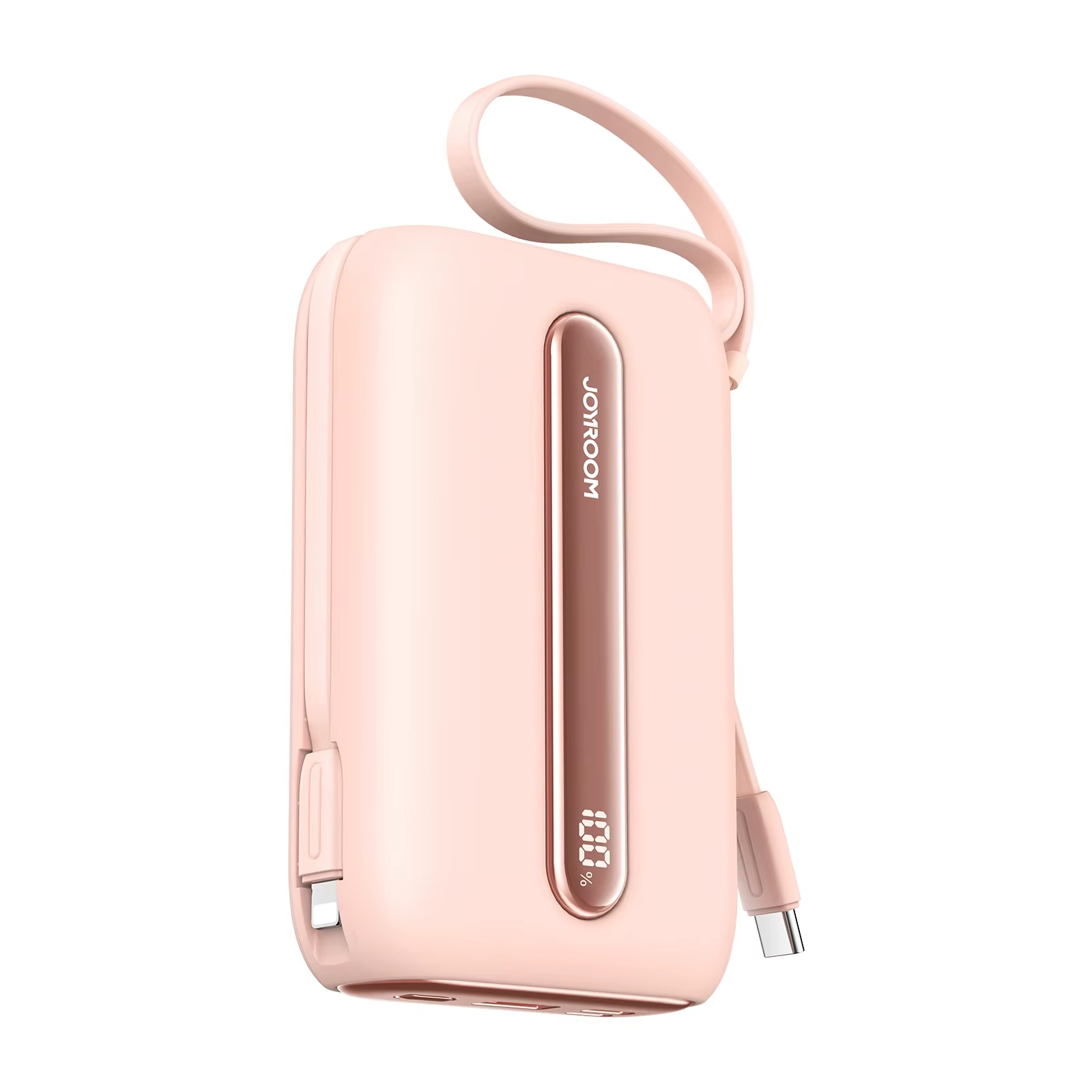 باور بانك صغير JOYROOM JR-L012 بقدرة 22.5 واط و10000 مللي أمبير مع كابلين مدمجينتمتع بالشحن السريع مع باور بانك JOYROOM JR-L012 بقدرة 22.5 واط. تصميمه الصغير والكابلات المدمجة ومنافذ الشحن الثلاثية تمكنك من شحن ثلاثة أجهزة في نفس الوقت. بسعة 10000 مللي أمبير، تحافظ على أجهزةك مشحونة طوال اليوم، بينما يعرض لك الشاشة الرقمية الذكية مستوى البطارية وحالة الشحن السريع.