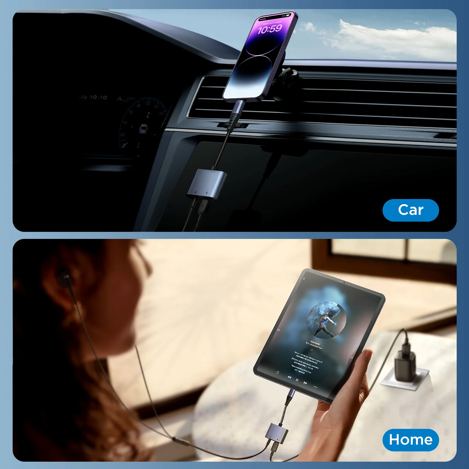 موصل Lightning مع منفذ 3.5 مم للاستماع والشحن في نفس الوقت.