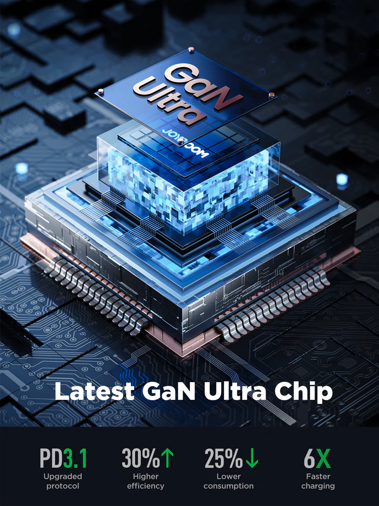 • شريحة GaN متطورة لشحن مستقر وتقليل الحرارة.