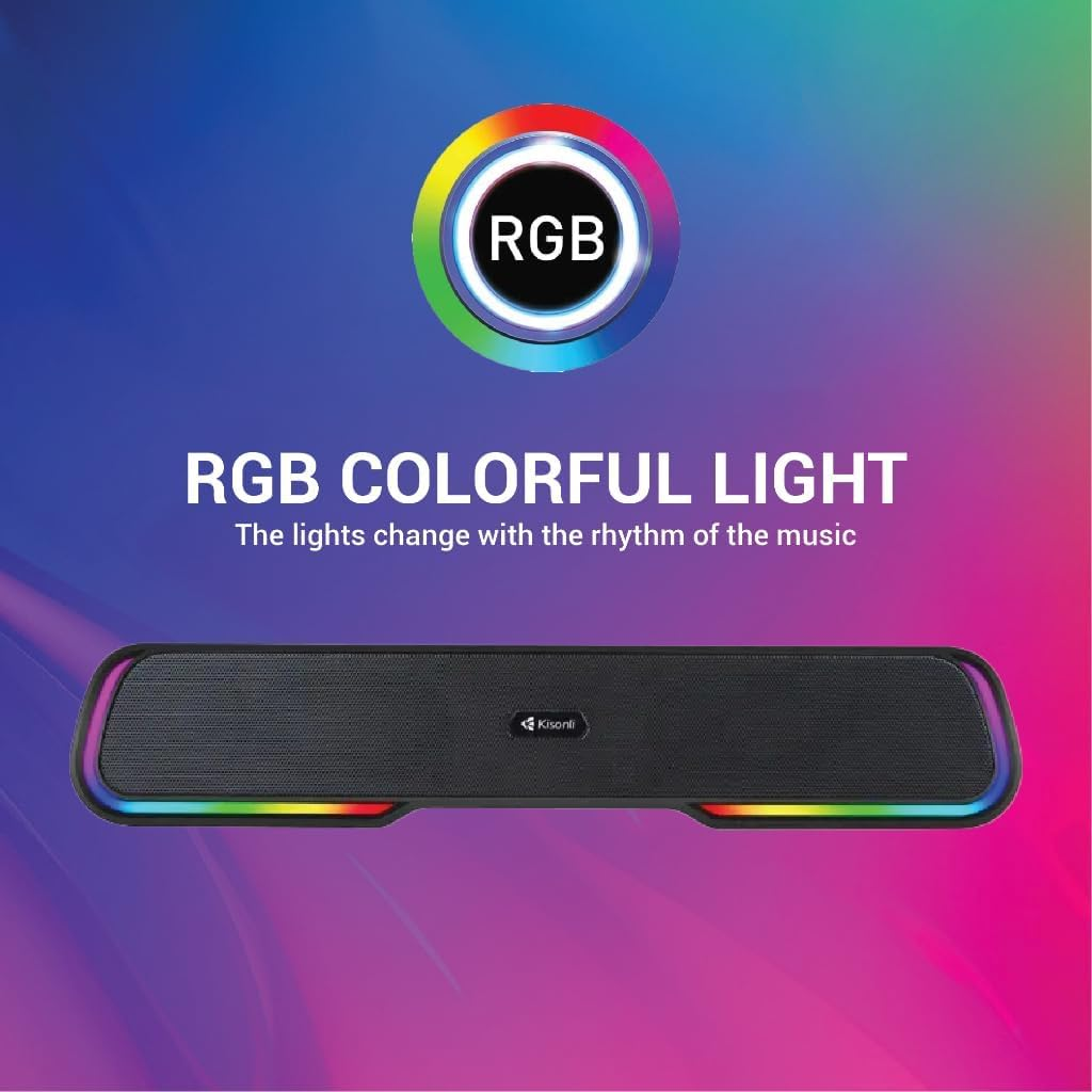 سماعة كيسونلي LED-913 ساوند بار محمولة – صوت قوي 10 واط – إضاءة RGB ملونة – بطارية قابلة للشحن – بلوتوث / USB / AUX
