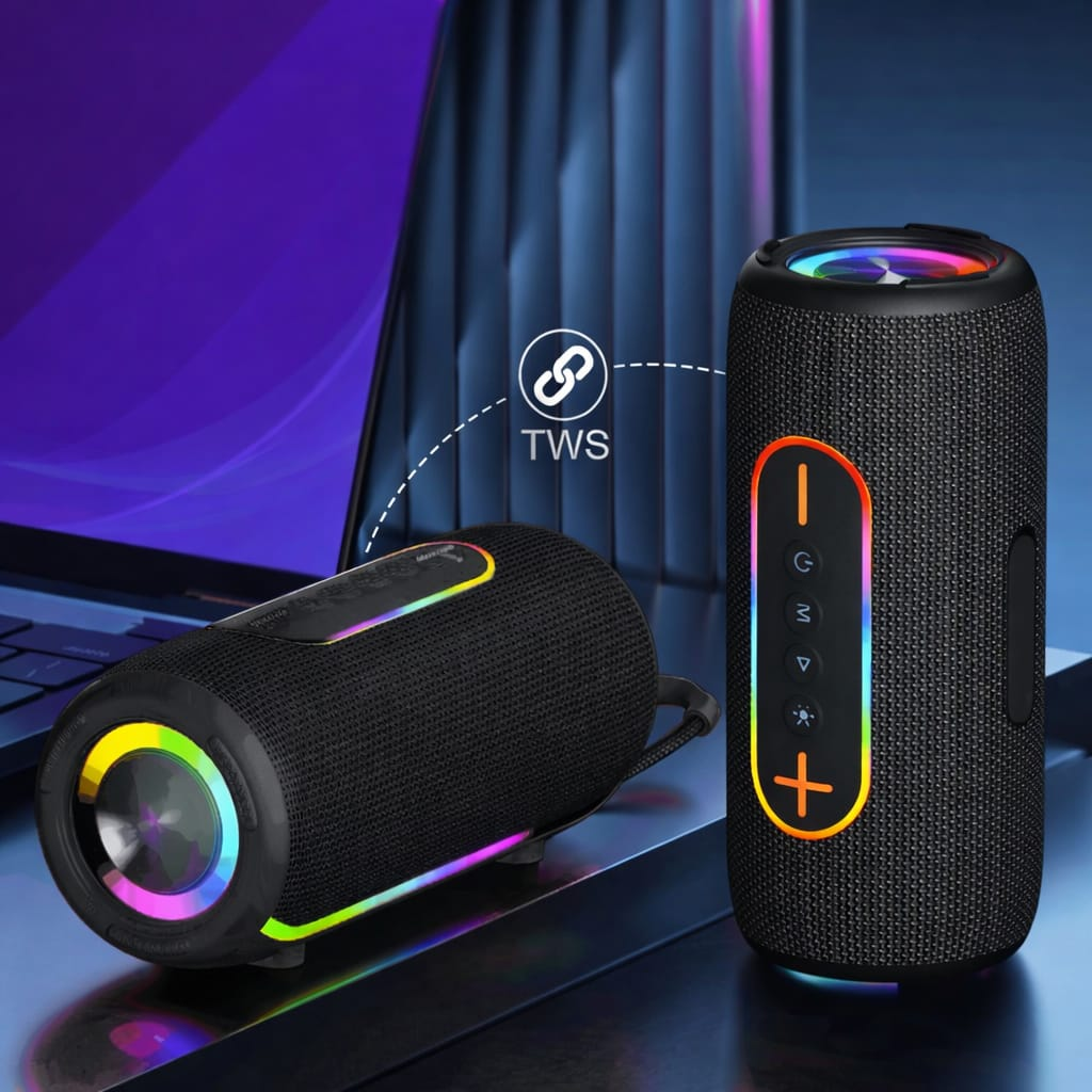 سماعة LS-X3 Bluetooth Speaker هي سماعة محمولة صغيرة الحجم بتصميم أنيق، توفر صوت ستيريو واضح مع جهير قوي وإضاءة RGB ملونة تضيف أجواء مميزة. تدعم تشغيل الموسيقى عبر البلوتوث وUSB وكارت ميموري وAUX بالإضافة إلى راديو FM، مما يجعلها مناسبة للاستخدام في المنزل أو الرحلات أو الحفلات أو أثناء السفر.