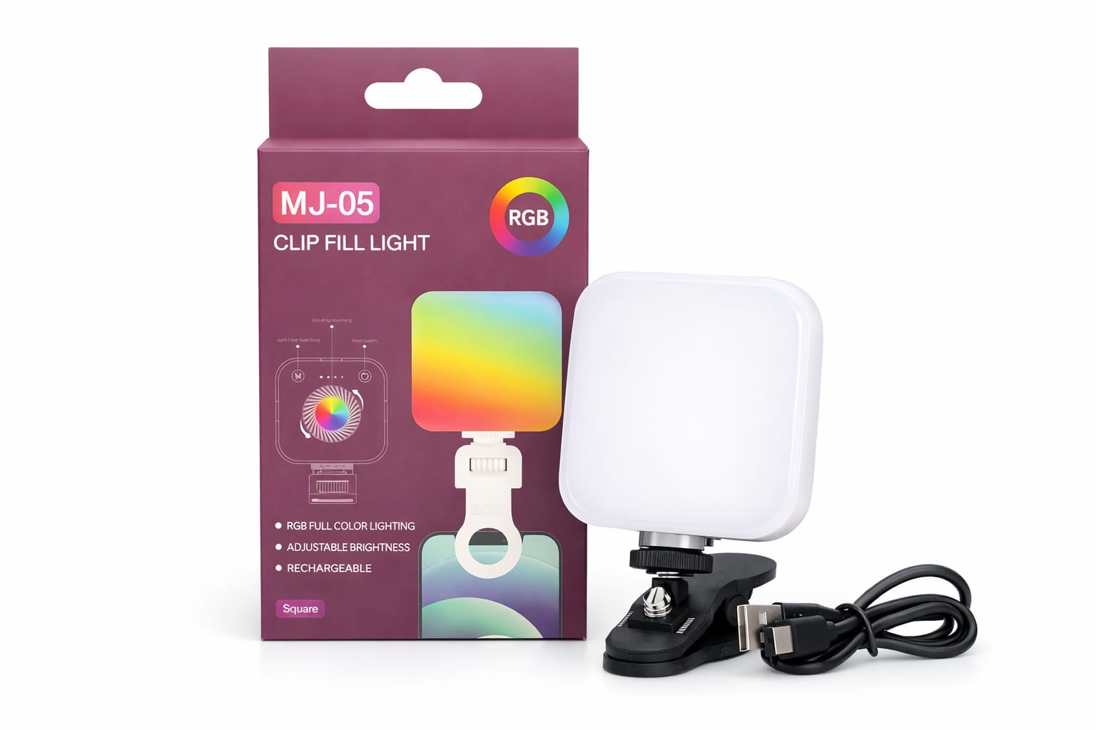 إضاءة LED محمولة احترافية بنظام RGB كامل مع كليب للتثبيت، مثالية لصناع المحتوى والتصوير واللايف مع تحكم كامل في الألوان والإضاءة.