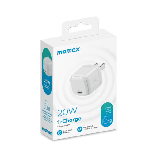 استمتع بتجربة شحن سريعة وآمنة مع شاحن MOMAX One Plug 20W USB-C Mini Charger المصمم لتوفير أقصى كفاءة في حجم صغير ومحمول.