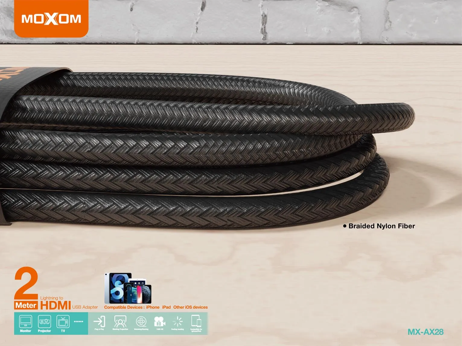 محول MOXOM MX-AX28 من Lightning إلى HDMI USB بطول 2 متر –4175