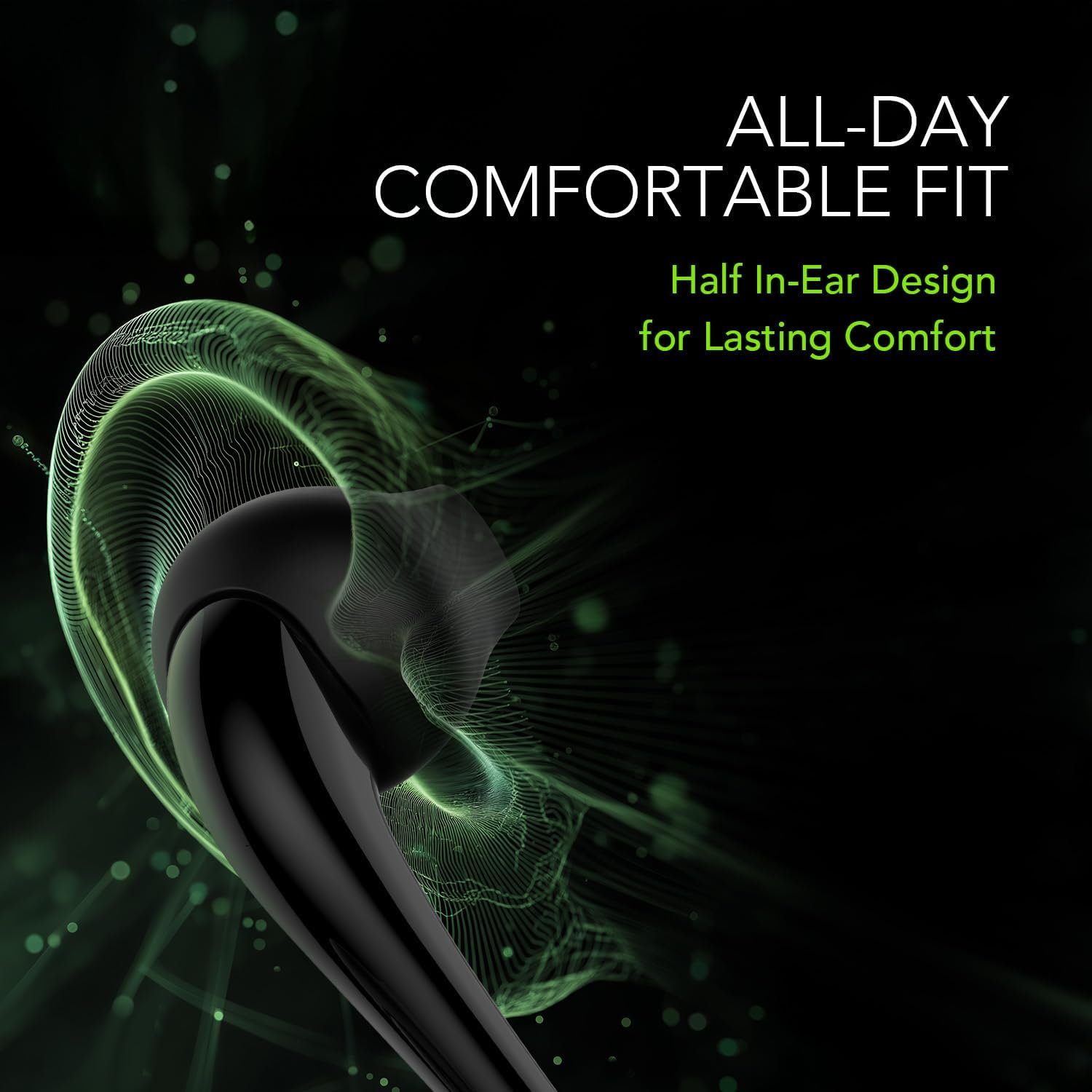 تصميم نصف سماعة داخل الأذن مريح للاستخدام طويل الأمد وثبات ممتاز