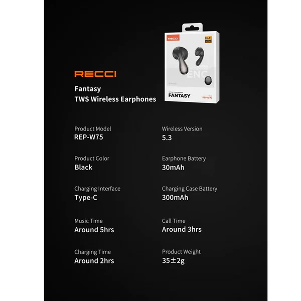 استمتع بتجربة صوتية مميزة مع سماعة Recci REP-W75 Fantasy اللاسلكية، المصممة لتقديم صوت نقي بتفاصيل واضحة وباس قوي.
