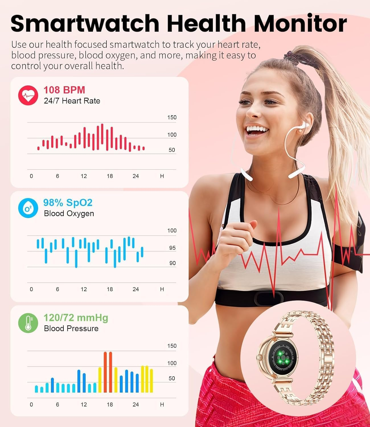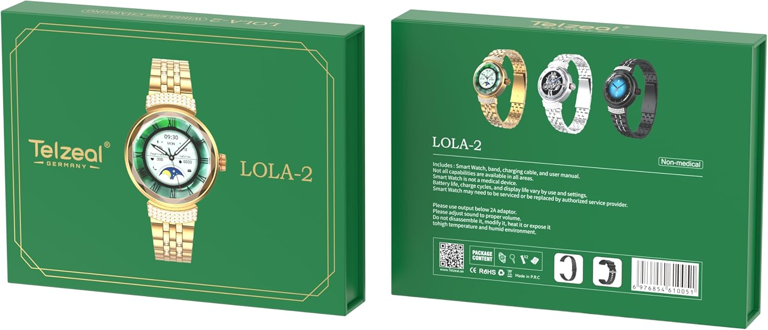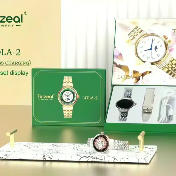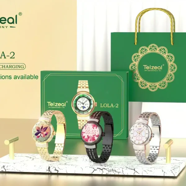 ساعة Telzeal Lola 2 الذكية النسائية مصممة للمرأة العصرية، تجمع بين الأناقة والوظائف المتقدمة. توفر هذه الساعة الذكية المميزة ميزات متطورة مثل قياس معدل ضربات القلب وتتبع النوم ورصد النشاط البدني، بالإضافة إلى الإشعارات الذكية للهواتف المحمولة.